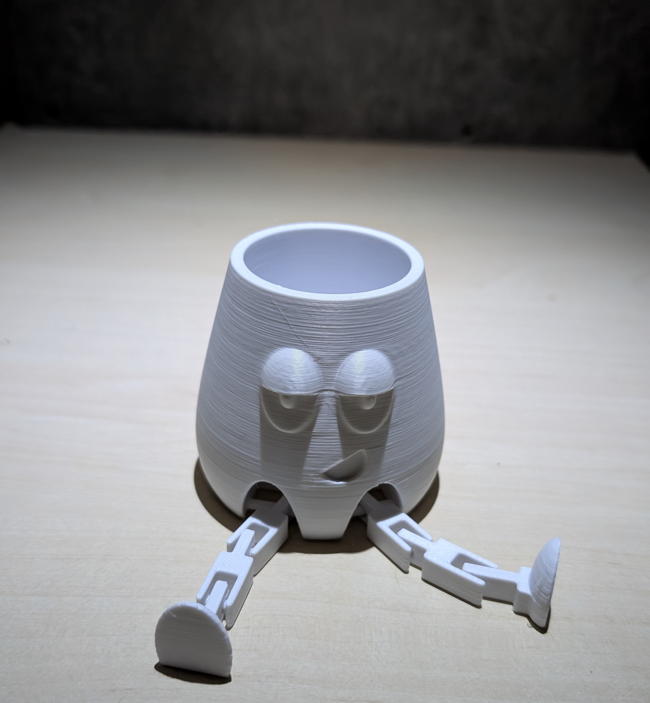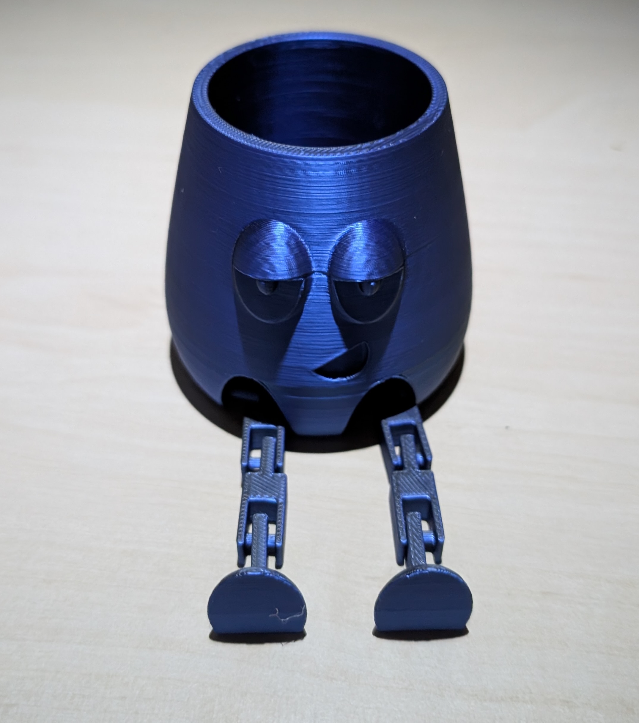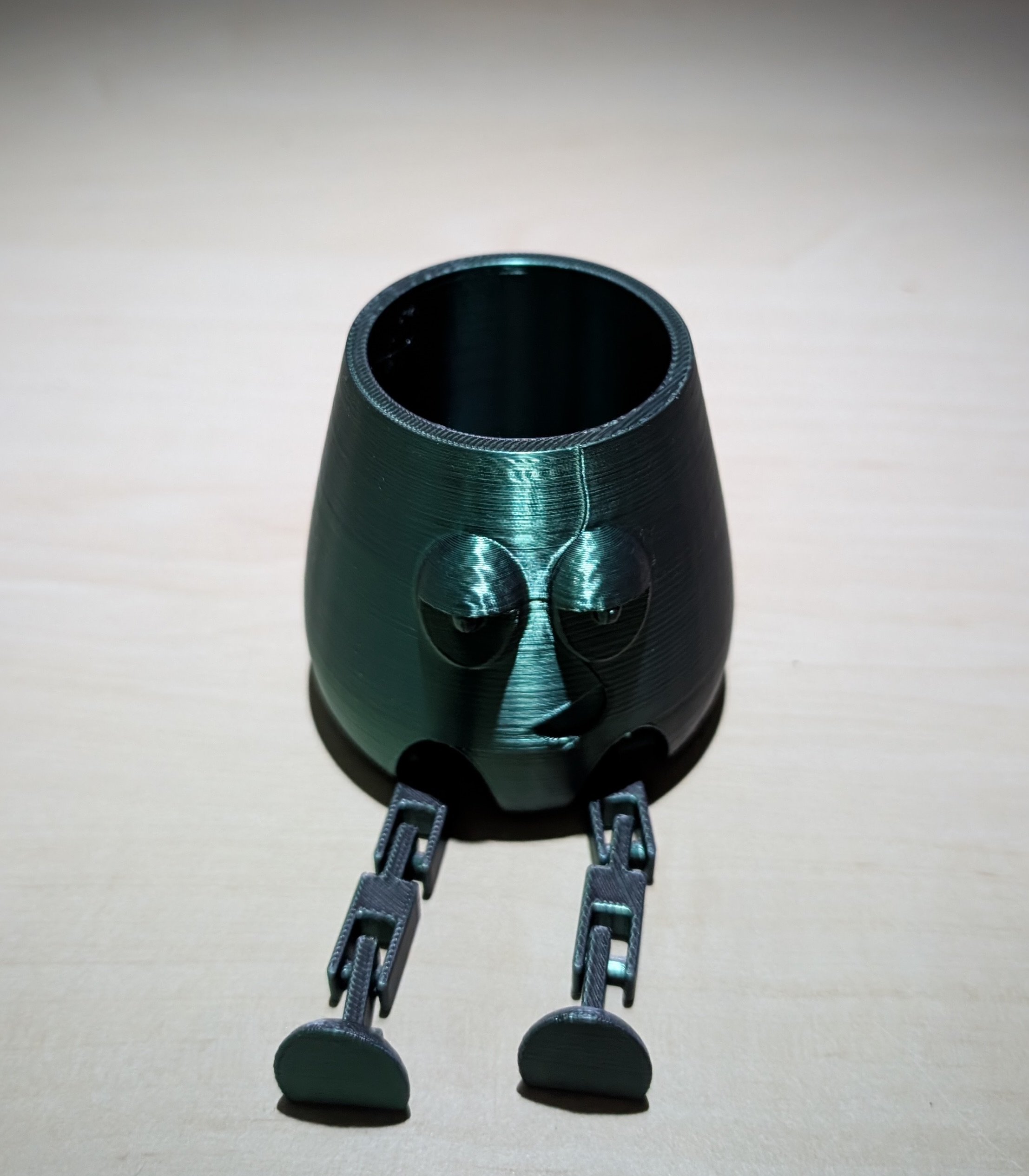 Dieser kleine Organizer ist ein echter Hingucker auf jedem Schreibtisch oder Regal! Gefertigt im 3D-Druckverfahren aus hochwertigem PLA-Kunststoff, überzeugt er durch sein originelles Design mit witzigem Gesicht und beweglichen Beinen.